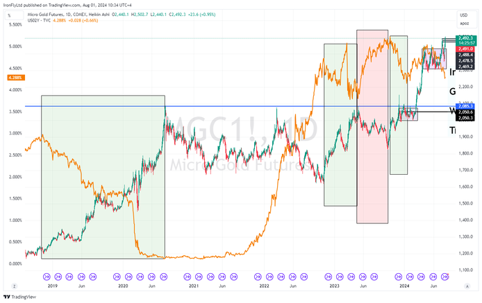 Fig 2- Directionally, Gold’s inverse correlation with interest rates has been a dominant driver.